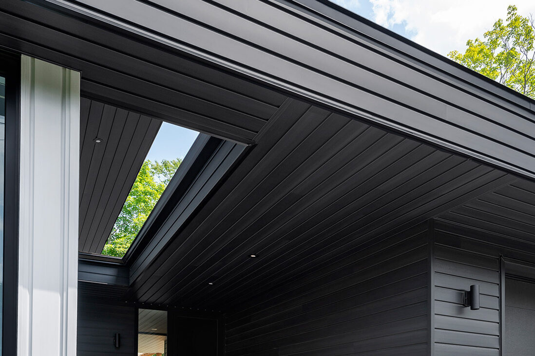 - Corrugated finishes for a simple and functional design using corrugated metal siding
